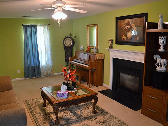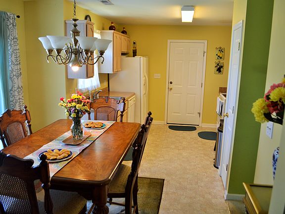 Conveniently located to shopping and restaurants; large rocking chair front porch; vinyl siding; two car garage with built-in shelves; additional parking pad; recently replaced kitchen counter tops, vinyl flooring and microwave; nice landscaping, well maintained.