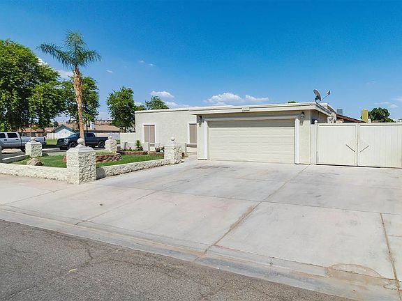 Awesome 3 bedroom 2 bathroom home on a corner lot with RV access in the heart of Yuma! Ceiling fans throughout, tile in main areas, and laminate in all bedrooms. Kitchen includes stainless finish appliances. Primary suite has a 3/4 bath with a fully tiled shower! Luscious grass in the front and back yards. Host your gatherings in the fantastic backyard that features a pergola, island, and pavers! Owned solar - no payments!