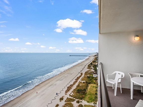 Step into your ideal oceanfront haven in Myrtle Beach, South Carolina! This captivating two-bedroom, two-bathroom condo redefines coastal living with a host of contemporary upgrades. The current owners spared no effort in enhancing this retreat, beginning with the transformation of ceilings and walls into sleek, smooth surfaces. The kitchen underwent a stylish makeover, boasting level two granite countertops, new stainless steel appliances, under cabinet lighting, and a strategically placed induction range—ideal for enjoying ocean views while preparing your favorite dishes! Immerse yourself in the oceanfront views from your living room and primary bedroom, enhanced by the presence of exquisite new custom blackout curtains that effortlessly harmonize with the decor. The condo has been thoughtfully rewired, featuring recessed lighting and brand-new ceiling fans in every room, ensuring a cool and comfortable atmosphere during summer days. Bathrooms have been rejuvenated with new shower inserts, toilets, and exhaust fans. Luxury vinyl plank flooring, complete with a moisture barrier, gracefully flows throughout the main living area and bedrooms, imparting a cozy warmth to the entire space. Delight in panoramic views of the beach and ocean from the primary bedroom, framed by floor-to-ceiling windows. Regency Towers, the epitome of coastal living, offers a morning workout room to kickstart your day and a year-round pool for relaxation. Come and witness firsthand the myriad delights this condo has to offer!
