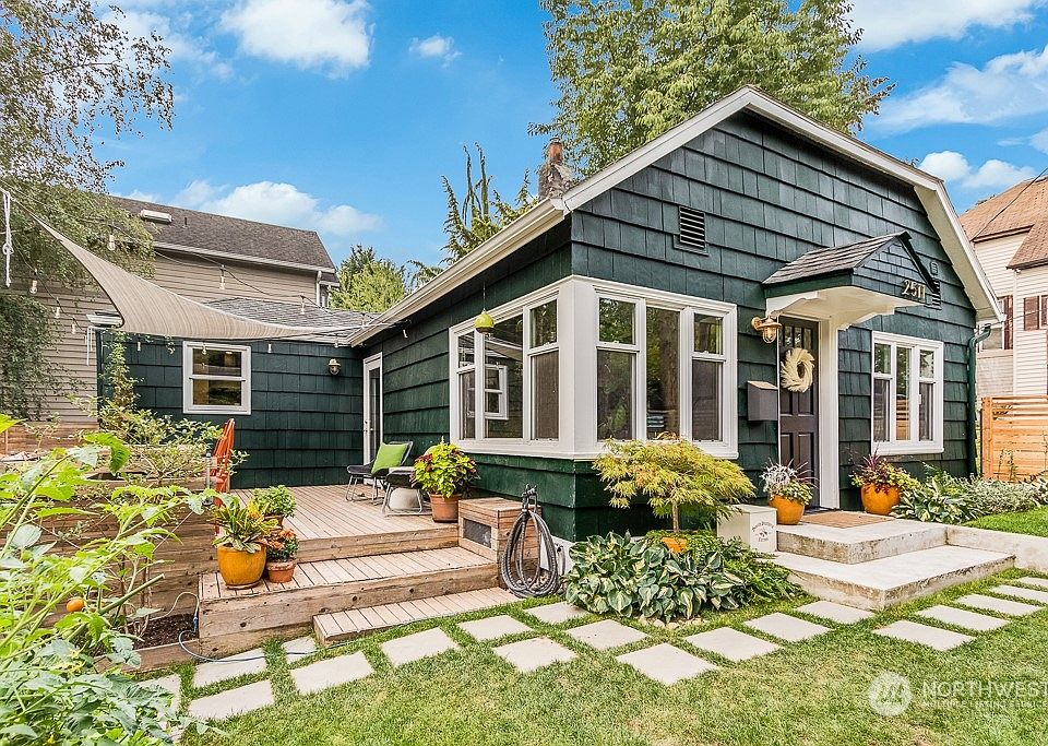 Enjoy in city neighborhood living in this arty craftsman bungalow. The charm starts as you enter into the fully fenced yard, w/ artistic garden spaces. It continues as you open the front door w/ surprising living, dining, office/den spaces w/ painted fir floors & updated period appropriate windows. Recent kitchen remodel is beautiful (black cabinets, gold fixtures, butcher block counters) & true to the character of the home. Bathroom also updated. Large entertainment deck flows off dining area & expands the living space & is surrounded by vegetable & plant gardens. You're in the heart of the city, but feels like you're in an oasis. Updated plumbing, electrical, windows & new insulation & gutters. Great basement storage/workshop space.
