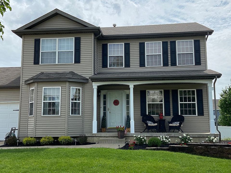 Call Owner at 440-796-2303 to schedule a showing. Almost 3,000 sq ft immaculate, 4 bedroom two story in Saratoga Subdivision with an inground pool and a finished basement. Main level has a corner gas fireplace, newer acacia hardwood flooring and porcelain tile floor in the kitchen. Updated Granite countertops, cabinets and stainless appliances in the kitchen. Freshly Painted. Main floor laundry. The unique staircase takes you to the master bedroom with a large walk-in closet and private bath with glass surround shower. Three additional bedrooms on the 2nd floor share a full bath. The basement has a daylight window, full bath, dry bar, and a very large family room. In the oversized backyard you will find a large Inground heated pool, enclosed by a privacy fence. There is a diving board and water slide. Stamped color concrete patio is magnificent. Newer front porch posts and landscaping. Ready for you to move in.