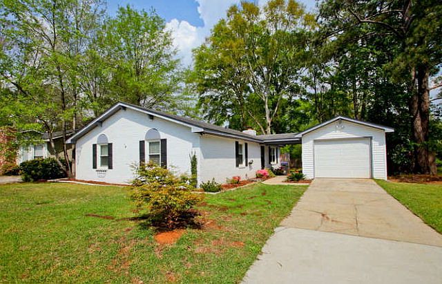 Brick ranch with large fenced backyard. Wood floors throughout, no carpet. Open floor plan with large family room, with brick wood burning fireplace, built in shelves and cabinets. Door leading from family room to backyard. Fully equipped kitchen with dishwasher, microwave, garbage disposal, refrigerator with ice maker, oven range. Door leading to backyard from kitchen. Spacious breakfast area. Fully fenced yard with patio, and garden area. Single car garage with lots of shelving and storage space. Pet friendly home. Ideal location, close to medical college, schools, I-20, downtown, shopping, & restaurants