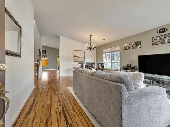 Great spacious home for any large household, entertainers, or hobby enthusiasts. The downstairs primary room features a walk-in closet, double sink vanity, separate jacuzzi tub and shower, and vaulted ceilings. The open family room and kitchen area with the large island are perfect to host gatherings. Updated kitchen stainless steel appliances including the refrigerator that stays. Separate living room, dining area, and laundry room with washer and dryer. The backyard has a covered patio for those extra sunny or rainy days, a hot tub, citrus trees, and parking for your RV or boat. Walking distance to Valley View Park and Cerra Vista Elementary school. Easy on-and-off access to HWY 25 and close proximity to the hospital, fire station, shopping, restaurants, golf course, and grocery stores.