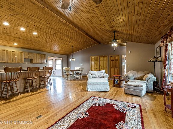 CAR ENTHUSIASTS! 6 CAR GARAGE!!!! This custom built 5 bedroom, 3 bathroom home with a 6 car garage on over an acre located in the well sought out school district of Prairie Ridge. Stunning curb appeal as you walk up to the covered screened in front porch with a lighted and heated brick walkway. Bright & airy kitchen with large island, large pantry, new stove and newer appliances. Opens up to the large great room with elegant vaulted wood ceilings. Beautiful Florida room which leads to the large brick patio with built in gas fire pit with custom lights built into the bricks. Great for entertaining and sitting outside around the beautiful fire pit. Large master bedroom w/full bathroom and walk in closet. Gorgeous 6 panel doors throughout home. Full finished basement, large full bathroom with heated floor, 2 storage rooms for tons of storage. Cedar siding, 2 HVAC systems, newer hot water heater, whole home generator. The 6 car garage is a car enthusiasts dream, mancave or workshop area. This beautiful home sits on over an acre with beautiful mature trees. Country living just outside of town. Quick close possible!