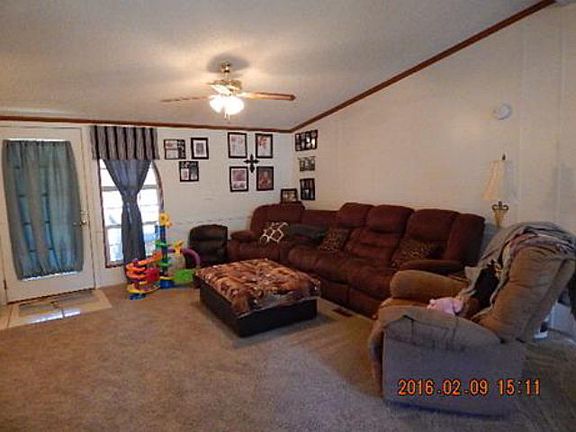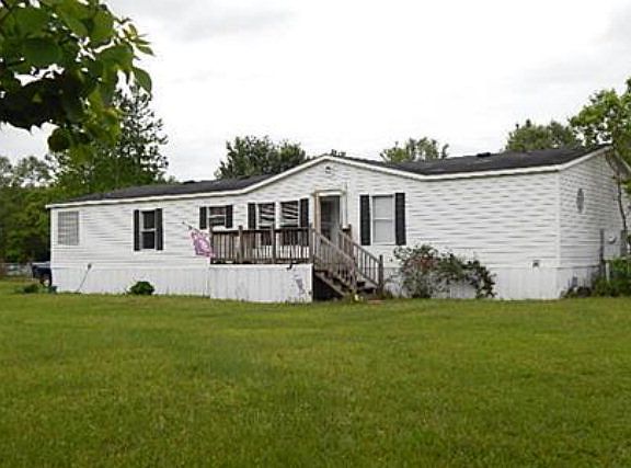 Double Wide Manufactured Home. Almost level and Almost 2 acres. Breakfast area in the kitchen, Living Room/Dining Room Combo. 4th Bedroom is an Office/Study. Kitchen has Tile back splash and flooring. Almost new carpet. Bathrooms large, glamorous. Open deck up front, Covered and screened deck in rear. 11'x11' Work Shed with power. Fenced. Chain linked and partial picked fence in rear. Vinyl, Tile and Carpet flooring. Very easy to show.