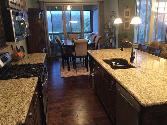 AWESOME LOT, private & backs to trees! Great price on this reverse 1.5 Story 4 Bed with 2 Beds on main level.Large great rm with corner stone frpl with rustic cherry hardwd flrs open to kitchen with an oversized granite breakfast bar island, huge walk in pantry, ss appl & tons of cabinets. Convenient mud rm off 3 car gar. Finished walk up LL w/frpl, wall of windows, wet bar, 2 beds /full bath. Covered deck overlooks great lot with patio below. Close to hwy! Can't get this much sq ft in new const. at this price!