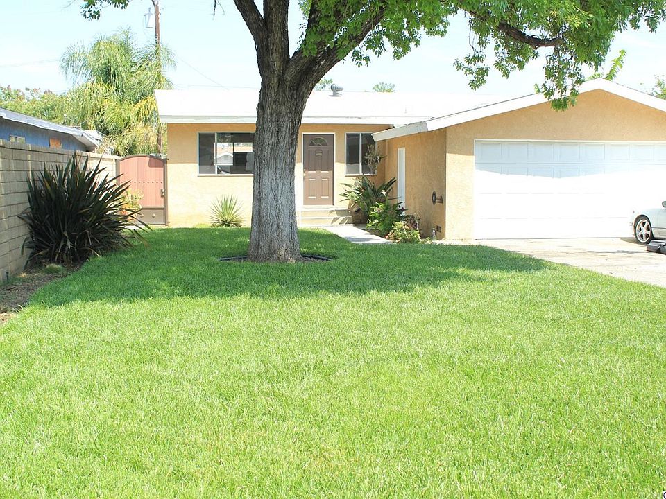 Nicely remodeled home with a large front yard and backyard perfect for entertaining. Beautifully upgraded bathroom features dual sinks, fully tiled floors, shower walls and bathroom walls. Hard wood and tile flooring throughout this open floor plan make this a great home.