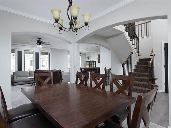 Incredible 2-Story in The Timbers at Clear Creek in West Lenexa! This spacious 3,321 sqft home offers 6 bedrooms, 4.5 baths, a finished basement, soaring ceilings, fresh paint, newer AC and water heater, a bedroom on every level, and an upgraded front porch that enhances curb appeal. The main floor features custom built-ins, a stone fireplace, picture windows, a mud room, an office/5th bedroom, and a convenient powder room. The open gourmet kitchen boasts granite countertops, custom cabinets, stainless steel appliances, a new dishwasher, a walk-in pantry, a grand center island with seating, and a handy breakfast area. Each of the spacious bedrooms comes with walk-in closets. The primary suite offers a large jetted tub, dual vanity, walk-in shower, private balcony deck, and a massive walk-in closet that flows into the laundry room for ultimate convenience. The finished basement highlights a fabulous rec room, 6th bedroom, a full bathroom, and ample storage space. Step outside to a huge patio with a lovely covered area and built-in fire pit, perfect for year-round gatherings, overlooking a lush fenced yard. This wonderful community offers a neighborhood pool and is located near nature trails, parks, shopping, dining, quick highway access, and the award-winning De Soto Schools.