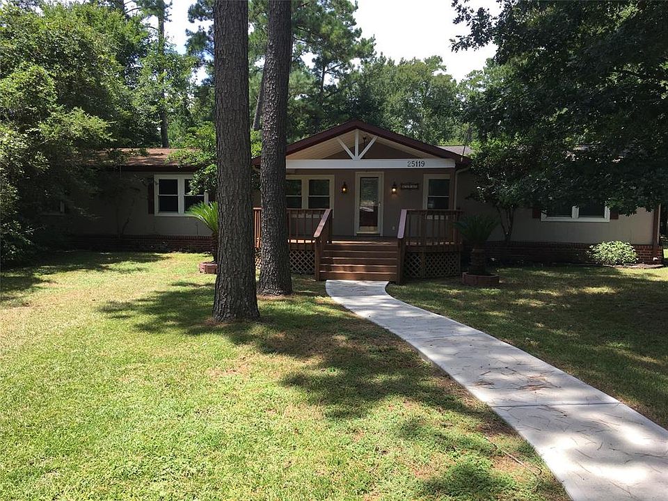 Oversized manufactured home in mint condition. Seller added large bedroom onto manufactured home adding almost 400 SQ. ft. of living area. 4 Bedrooms,3 baths, new carpet in bdrms., new laminate floors, fresh paint, a brand new ac-heating unit and a beautiful front porch nestled among the trees on a one acre lot. A gorgeous elevated back patio with a Tiki Bar with a beautiful above ground Pool for your guests. 2 -500 gallon septic tanks, a covered carport, a storage building, and a workshop, and a sprinkler system. Open concept family room with a wood burning fireplace, SS fridge with house, Double pane-Double hung recent windows, and roof replaced within last 10 years. Highly accredited Magnolia School District, No Mud Taxes, No HOA fees and low Property Taxes. Watch the wildlife from the peace and tranquility from your beautiful back patio. Huge closets in all bedrooms. A very private setting for your family, so come and see.