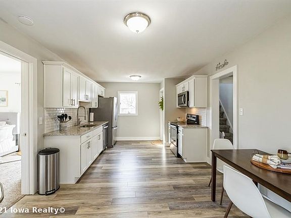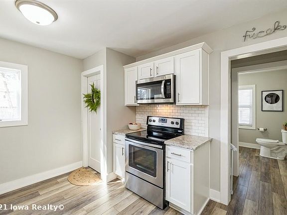 Complete redo in 2018 with almost everything new Sparkling white kitchen accented by granite tops, subway tile backsplash and SS appliances. Two remodeled baths on the first floor (including a private one off one bedroom. Bedroom upstairs has an extended space that can serve as an office or walk-in closet. Roof being stripped with new shingles laid prior to closing. Newer LVP and carpet throughout the entire home. Newer GFA, CA, wiring. Inviting front porch for morning coffee or an afternoon cooler. Newer vinyl windows with aluminum siding make this fairly maintenance-free. Fully waterproofed basement. Fenced back yard for children or pets. Convenient to Merle Hay Mall, schools, trails, parks, etc.