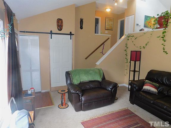 Eclectic Mountain Retreat! 3 bdrm 2 bath home in excellent location! Vaulted ceilings in living room leading up to the kitchen with eat in dining! 2 bdrms & full bath up, spacious mstr on lower level with full bath, WIC, huge W/D utility room with second fridge! Enough rm for work out space/office! Impressive & easy interior crawl space access, screened porch, fenced yard, large deck! RDU/RTP/540/440/US1/Restaurants/shopping minutes away! Seven Oaks Recreation Center within walking distance!