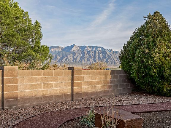 Welcome to Stunning Unobstructed Sandia Mountain views! Peaceful and Serene 'move in ready' one level! Flowing open floor plan with a plethora of windows for sunshine and views. So many options to utilize the spaces. 4 Bedrooms, two with classic window seats. Large Chef's kitchen features stainless appliances including a 5 burner stove, granite counters; opens to a spacious covered patio perfect for enjoying the views and outdoor relaxation. The Owner's Suite boasts mountain views, walk in closet, backyard access, garden tub, separate shower and double sinks in spa bath. Gated access to backyard. Nearby River Paths in both directions and a plethora of Shops and Services. Newer HVAC and water heater. Airport and downtown 30 minutes; 10 minutes to Cottonwood Mall.