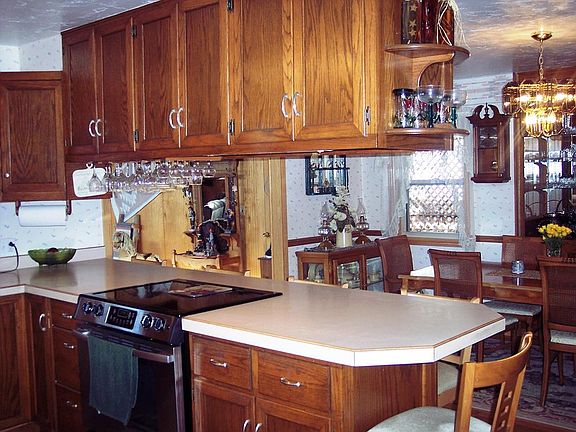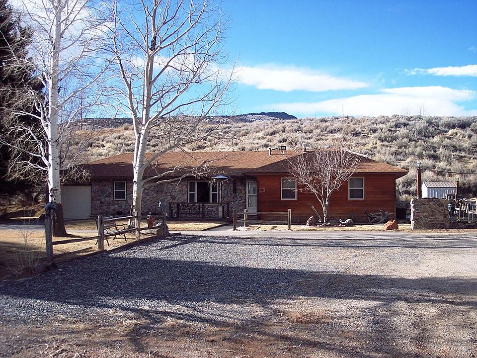 This home has country privacy in town and is priced to sell! One level living in a unique and quiet location. Upgraded plumbing, heating, electrical, flooring, windows, septic, metal roof, etc. The large, comfortable family room with beautiful stone fireplace has a passive solar design. There is a sheltered patio area for entertaining. The detached garage has two stalls and a large workshop.