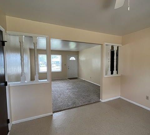 Ranch style home for rent. This home has a living room, kitchen, 3 bedrooms, 1 bath, washer/dryer hook ups in bathroom, 1 car attached garage, gas heat, and central air conditioning. New carpet in living room, hall & master bedroom. New tile in one bedroom. Freshly painted walls and ceilings throughout. Concrete patio provides a fun entertainment space. Two year lease minimum. Tenant pays utilities. Housing vouchers are not accepted.