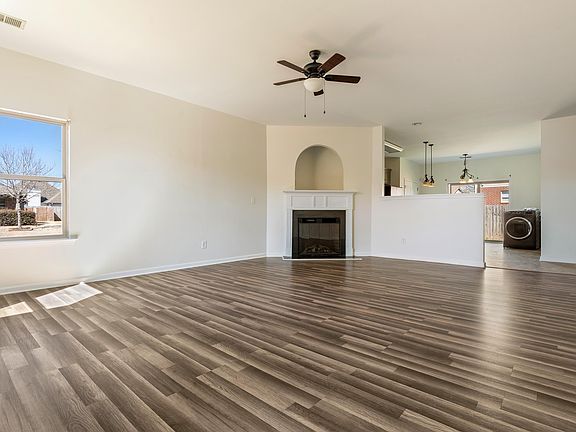 ONE STORY living on a CORNER LOT in Moody's ALDEN GLEN! The lovely home features a COZY electric fireplace with a niche above. This home is great for entertaining - the family room opens into the EAT-IN Kitchen! Lots of COUNTER SPACE and a ISLAND with BREAKFAST BAR. Sliding doors in the eat in area lead to the FULLY FENCED BACKYARD and the OPEN PATIO. The MASTER SUITE features a trey ceiling and DOUBLE DOORS that lead into the MASTER BATH. The bath has DOUBLE SINKS, a Garden Tub, and a separate Shower. There are 2 additional bedrooms and a full bath. Plus, a LARGE laundry closet and a Double Car Garage! new fresh paint and floors throughout the house