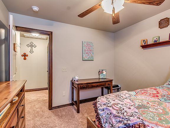 All this home needs is YOU! Welcoming front room with gas log fireplace and beamed ceiling flows right to the informal dining room and kitchen. Easy access to the covered back patio and fenced back yard. Kitchen has stainless appliances, granite counter tops , tile back splash and pantry. Master bath has a walk in tile shower as well as a safe room closet. Nicely landscaped with sprinkler system and additional off street parking for a third vehicle.