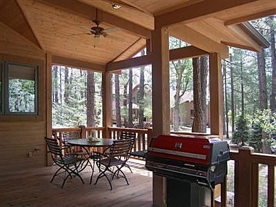 Beautiful single level home that is situated in the most serene and private area of the Forest Highlands community. Backing National Forest, this mountain home has abundant natural light from the wall of windows in the great room, upgraded finishes and both covered and uncovered back deck. The open floorplan has vaulted ceilings and a gorgeous stone fireplace. If you like privacy, this may be the one. Furniture is available.