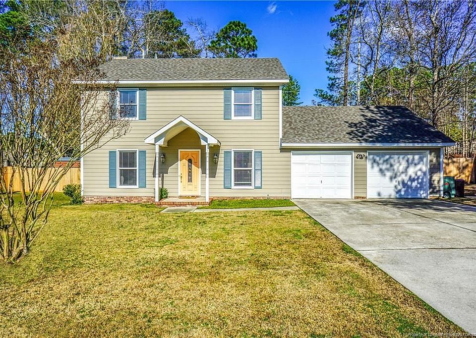 Spacious 2 Story Home features an Inviting Foyer, Formal Living Room, Formal Dining Room, Eat in Kitchen with Breakfast Bar, Den with Fireplace, Wood floors throughout! 4 Bedrooms, 2.5 Baths, Laundry Room, Half Bath for Guests, Large 2 car garage, large double driveway, wood stairs, Huge Privacy fenced back yard. 30 year Architectural Shingles are less than 2 years old. All rooms are large. Some updates include laminate wood flooring upstairs, light fixtures and interior paint. Located in desirable Birch Creek subdivision. Jack Britt schools! Convenient to shopping, schools, restaurants and within 15-20 minutes to Ft Bragg! This home has room for everyone! ***Seller offering a $1,500 paint allowance with acceptable offer***