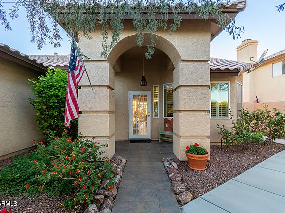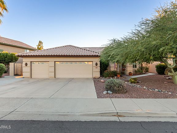 This home is MUST SEE! No HOA! Lovely facade, front porch & a 3-car garage w/ built-in cabinets. Interior features beautiful tile flooring, plantation shutters throughout the home, vaulted ceilings, bay windows, & a spacious living/dining room. The great room w/ media niches & fireplace. Beautiful chef-like kitchen boasts custom oak cabinets w/crown molding, granite countertops & a breakfast bar. Double doors open to master bedroom, bathroom w/dual sinks & walk-in closet. Don't miss the den/office. Serene backyard w/ waterfront view overlooking a large pond on a golf course, covered patio, built-in SS grill w/ oven and large granite countertop, & newly resurfaced pebble tec pool. Home includes all appliance including washer/dryer. Contact listing agent for showing details.