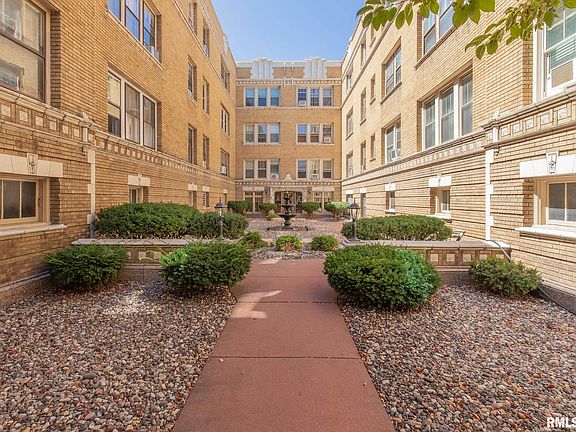 Hardwood floors and exposed brick are highlighted in this lovingly maintained condo with nicely updated kitchen with soft close cabinets and drawers located in Harrison Manor. Convenience, security, and comfort are abundant in this one-bedroom, one-bath condo with security entrances, on-site laundry, a storage unit in the basement, 2 window air conditioning units, and location, location, location. Conveniently and centrally located near Vanderveer Park and just North of St. Ambrose University and Palmer College of Chiropractic. Designated parking across the street and 20-minute parking in front of the building. Assoc. fee includes heat, water, sewer, trash collection, snow removal, exterior grounds & maintenance. The furniture in the unit will stay.