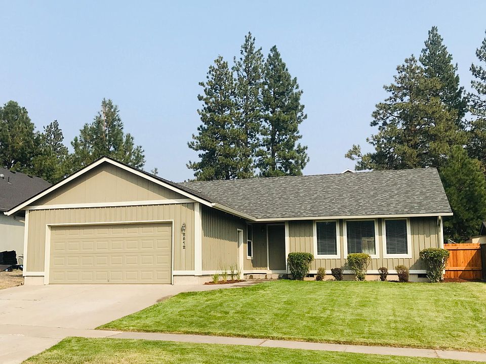 Home is 1702 SF with new paint and flooring throughout (luxury vinyl plank, carpet). Roof is also brand new. It is one level with 3 bedrooms, 2 baths, large living room, eat-in kitchen, dining area, laundry room, double attached garage and fenced back yard with sprinkler system. Refrigerator included. Home is well maintained and within a lovely family friendly neighborhood, Shevlin Meadows. It is ~1/2 mile to Shevlin Park which offers magnificent trails along the river for running, hiking and Mt. Biking. Home is also ~1/2 mile to NW Crossing which offers multiple beautiful parks, shops, restaurants, etc... Neighborhood schools are Miller Elementary, Pacific Crest Middle and Summit High. Home is available 9/19/22 and a minimum of a 12 mo. lease is preferred. Dog considered. No smoking. Call/text/email for additional information. Renter pays utilities. Year lease preferred. Dog considered upon approval and non-refundable pet fee, no smoking/vaping.