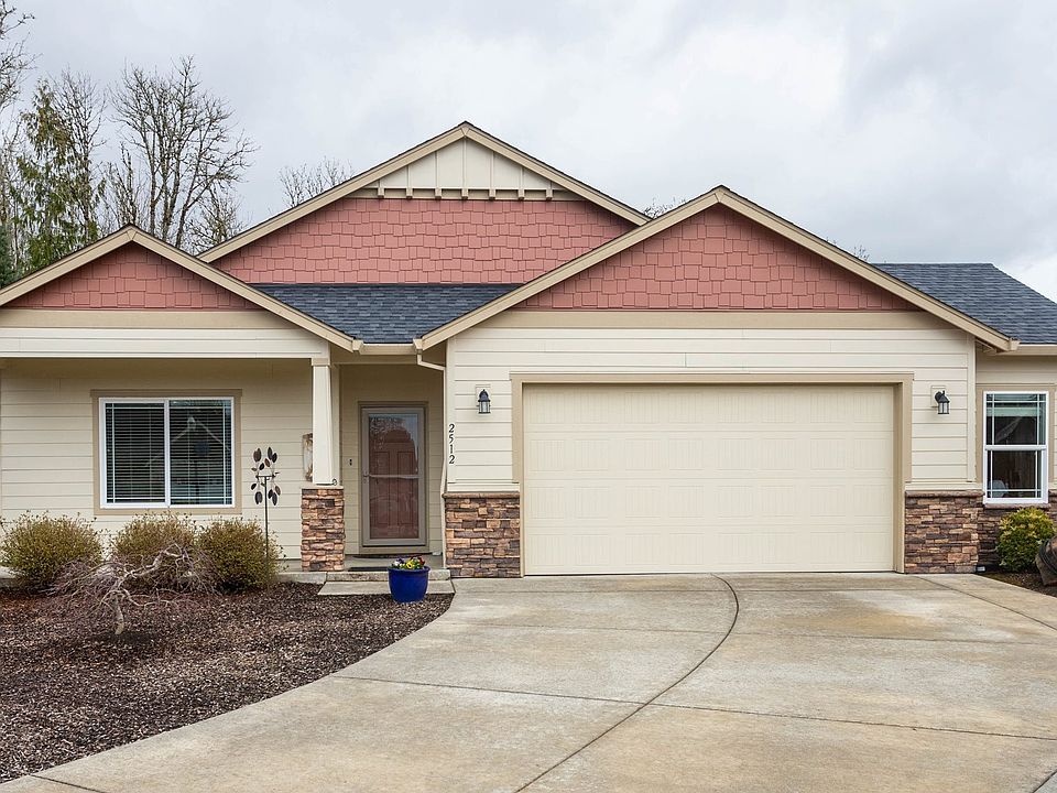 This shining 1 level ranch, is nestled on a quiet cul-de-sac in one of Ridgefield's lovely neighborhoods, just minutes to quaint downtown, shopping & schools. 3BR,2BA + office/den. A gourmet kitchen includes granite island, SS appliances, pullout shelving. Lovely upgraded dining room w/ built-in hutch & pretty bay window. The extended 2 car garage is perfect for a workshop/hobby area. Step out onto your large covered deck overlooking the professionally designed - low maintenance yard w/ sprinklers & gate access to walking trails. Huge under deck storage. Raised veggie beds and a greenhouse are waiting for this years harvest. RV parking space behind the gate makes this home complete. Come & take a look today.