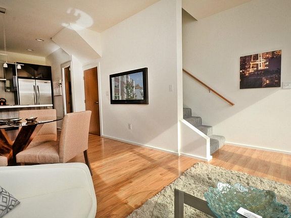 Central location w/ all the amenities you expect. 4 Star Built Green, designer finishes, hardwood floors & stainless appliances. Master suites w/ plenty of room for a king sized bed, spa-like master bath & privacy galore. Retreat to the peaceful serenity of the rooftop deck & enjoy S facing views of Mt Rainier. Walk, stroll, ride or bus to hustle & bustle of downtown & come home. One dedicated parking spot. Tenant responsible for all utilities