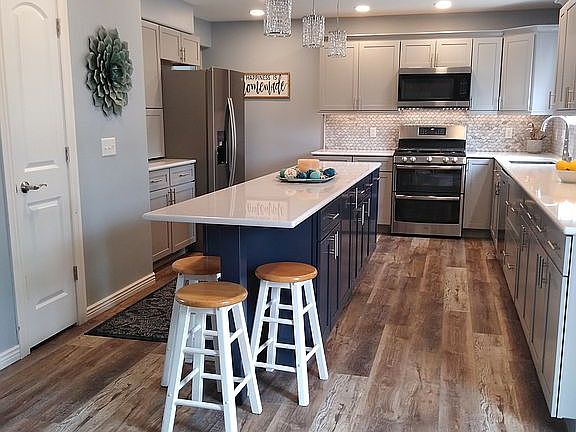 Completely redone to be elegant and modern! Take a look at this amazing 5 bed 3.5 bath home that is move in ready and beautiful! You will love the fresh color scheme of the blues and grays. This home features a large open living and dining area and an amazing kitchen featuring a huge island for prep and storage space. You will love the two toned cabinets featuring soft close drawers and the marble backslash. All of the bathrooms have been redone to feature custom tile and new vanities. There was also a new laundry room added on the main level! There is new high end flooring throughout the home and the basement has been finished for extra living space. You will love the large deck off of the main level! Close to schools and parks! **This home has a 48 HR FRR**