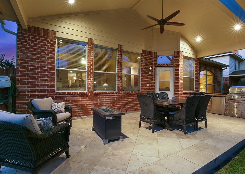 Beautiful home in sought after Klien ISD! Home features a chefs dream kitchen with Whirlpool stainless steel range, dishwasher & microwave. Beautiful granite countertop/sink & backsplash and floating island to match. 6.5''handscraped wood floor in Dining/ Study and Family room. Large Primary suite with upgraded carpet, large primary closet with pullout utility to the laundry room. Granite countertop, with gorgeous glass shower and river rock floor tile. in primary bath. Amazing custom covered back patio, with summer kitchen with granite counters, travertine patio, grill and beverage fridge. French Elementary School. Sprinkler System that covers all garden beds and lawn areas. Beautiful curb appeal with added trees and professional landscaping in front and back yards! This home has so much to offer!