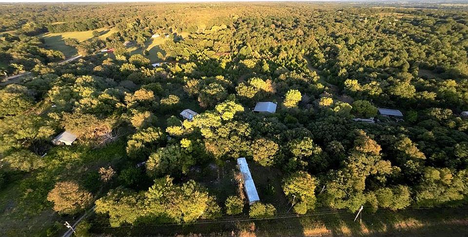 Need land on a paved road? There are two homesites with electric, water and septic systems on this 12.95 acres MOL. One house has fire damage and the other is not in livable condition. Please do not enter them. The value is in the land, barns, and 10 yr old 30’x40’ metal workshop with 15’x40’ parking area added on. The workshop also has water and electricity. The property was used for horses, so there’s a 3-stall barn, pens, and horse fencing. In ground storm shelter is included for protection. Seller reserves and will remove cars, trucks, farm equipment, a yellow storage building, and propane tank. The other propane tank is leased. There’s a creek at the back of the property and several huge pecan trees. Rural water and OEC electricity and fiber are available. Lots of potential here for your home plans on this pretty acreage!