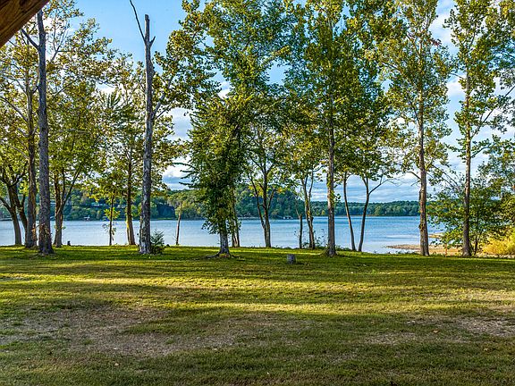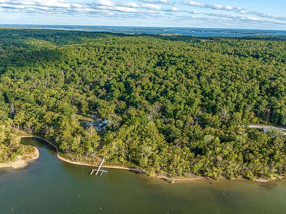 Amazing New Price Offering! Lake Dream Living of unlimited possibilities with furnished modern Farmhouse 10+ acre Waterfront Property. 1,235'+ feet (MOL) of shoreline! Amazing enjoyment of sunsets, fishing, boating, and swimming. Natural creek, personal 2 slip boat dock with permit, boat launch area, beachfront, and wildlife habitat create the most secluded and tranquil lake hideaway. Such a fabulous home designed to sleep up to 10+ with 2 bedrooms plus a charming loft area. Knotty pine brings all the charm w/ high end amenities of wood burning porcelain fireplace, granite, designer tiles, spa inspired bathrooms & climate controlled garage. Close to Shangri La Resort & American Heartland Amusement Park. Also, Investment opportunity with 8 RV or Tiny Home hookup sites with utilities!