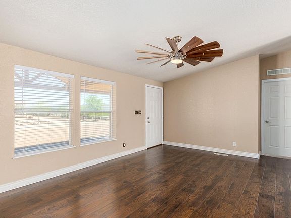 Priced below comps, for a quick sale. Beautifully Remodeled Home & Horse Property! Situated on over an acre of land w/breathtaking Mountain Views! Handsome new wood plank floors throughout, upgraded ceiling fans, welcoming palette, window blinds, vaulted ceilings, & open floor plan. New eat-in kitchen features a center island, breakfast bar, stylish counters, pantry, & plenty of wood cabinets. Patio access from dining area. Generous sized bedrooms, ample closets, 2 baths, & interior laundry room w/door to outside. Brand new front porch and built in planters. New horse stable and plenty of covered spaces for cars or tractors. The horse will love their new home too!