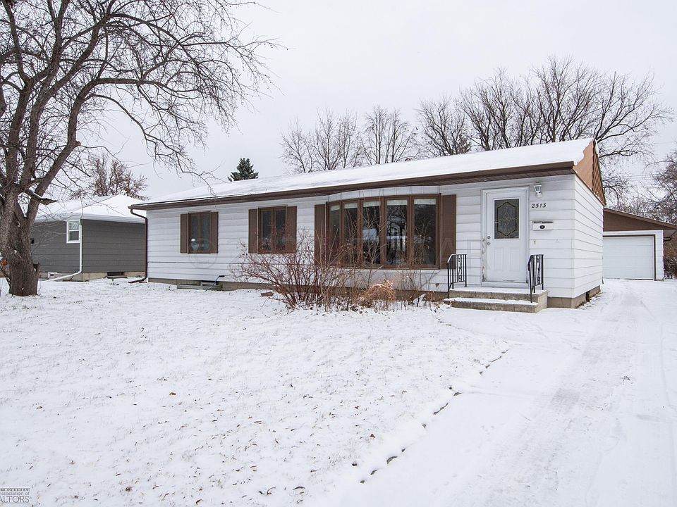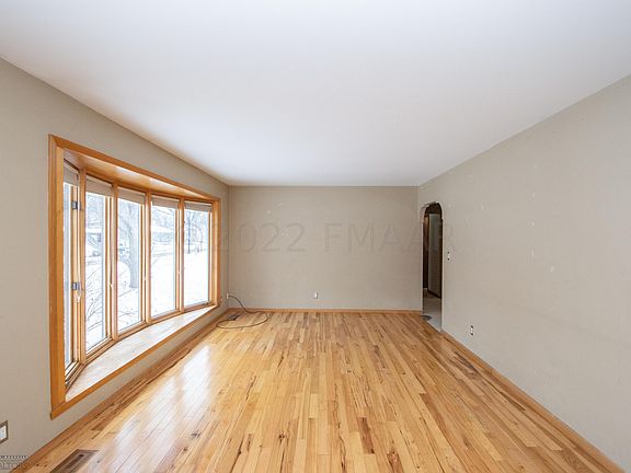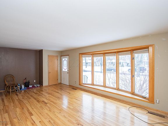 North Fargo rambler featuring four bedroom and two bathroom home. Additional living room on main with wood beams, floor to ceiling stone gas fireplace with built in shelves. Living room has exit to large deck to backyard. Main living room has large bay window that brings in a ton of light. Main floor has three bedrooms and a full bathroom. The basement features a family room, bedroom, 3/4 bathroom and another room. The additional room needs egress to make this home a five bedroom house. Laundry hook ups on both main floor and basement. The yard is fully fenced with a large wood deck. Established trees in both front and backyard. Over sized two stall garage. This home has great space!