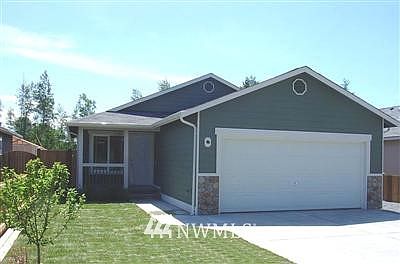 Brand New Beautiful Rambler in Lakewood Meadow Condominium community. Welcoming covered front porch. FREE WASHER/DRYER & Buyer Bonus: Fenced backyard, Window Blinds & Screens, tiled entry, Ext. stone accents & full Landscaping. Spacious open floor plan w/vaulted ceilings. Large kitchen w/custom MAPLE cabinets & dining area opens on to patio. Home is not attached but is considered a CONDO. Efficient LP gas heat/water. 2 car garage & private driveway. Quiet neighborhood setting minutes to I-5.