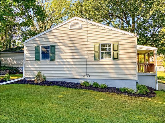 Adorable two bedroom ranch with sparkling white kitchen and open floor plan! Kitchen and living room flow together into large living space and offer flexibility for furniture placement. Two bedrooms share and updated bathroom with new vanity and storage. The entire home has recently been painted in neutral décor and also includes new carpeting in the lower level that has potential for use as a third bedroom or future game room. Owner has built in in new closet organizers and loads of built in storage shelving racks in the basement. Cozy covered front porch, corner lot with private rear yard patio and space just off the kitchen. Move in ready!