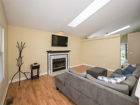 Stop scrolling, this is your new home! Livable, Lovable, Affordable - This 3BR great room ranch offers 1500+sf of finished living space. Greet your guests in the vaulted great room, complete with a charming skylight and cozy w/b fireplace. The eat-in kitchen is also vaulted with skylight and offers good cabinet space & pantry. The dining area is a sunlit space with bay window slider to patio, perfect for summer BBQs. Retreat to the spacious owner suite with not one, but two closets and full bath. The lower level is a haven for family fun, featuring a large family room, bonus room/guest room, and full bath. Outside, enjoy a level, fenced yard that backs to trees. And what darling curb appeal, too cute! Located on a quiet cul-de-sac in the heart of O'Fallon, with easy access to highways, shopping, and dining, this home is so much to love about it including all the appliances stay! Stop looking and start packing!