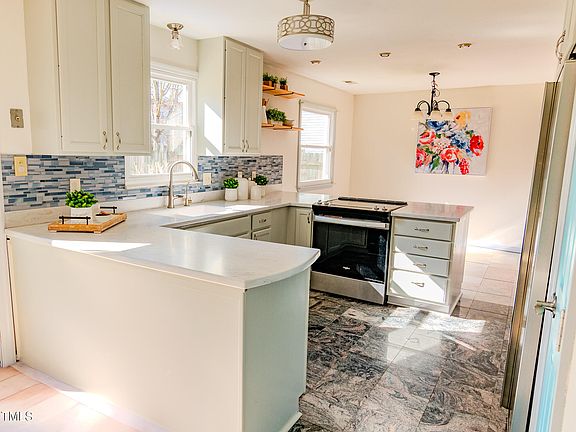 Introducing an impressive new listing in North Raleigh, featuring a rare combination of four bedrooms and three full bathrooms situated on a generously sized, flat, fenced lot. The property boasts a brand new roof and fresh carpeting in the living room and upstairs areas. Conveniently, one full bathroom and a bedroom are located on the first floor. With two distinct living areas, this home is ideal for entertaining guests. The kitchen has been tastefully updated, showcasing solid surface countertops, a stylish tile backsplash, stainless steel appliances, and tile flooring. This residence has been well cared for, and its charm is evident throughout.