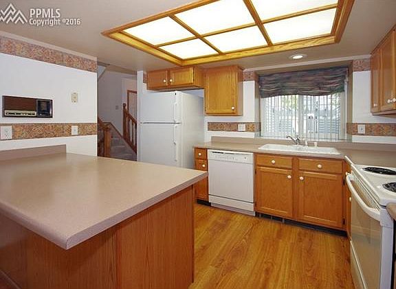 Enjoy Pikes Peak Views From This Low Maintenance, Move-In Ready 3 Bedroom, 4 Bath, 2-Story Townhome In Desirable Community With Clubhouse And Tennis Courts In Esteemed Academy District 20! Nearly 2000sf Offers Plenty Of Space For Everyone & Everything! Open Floor Plan Throughout The Main Level Features Gleaming Hardwood Throughout The Open Kitchen With Breakfast Bar And Spacious Dining Area With Walkout To The Back Deck With Pikes Peak Views. The Two-Story Great Room Features A Cozy Fireplace For Those Cold Colorado Nights And Skylights Throughout The Main Level Flood The Home With Natural Light. Huge Laundry Room With Ample Storage & Powder Room Complete The Main Level. Upstairs You Will Find 2 Spacious Master Suites, Both With Private, Adjoining Bath And Sizeable Closets, And One With Walk-Out To Private Deck. The Walkout Lower Level Features A Large Rec Room With Access To The Back Covered Patio That Leads Out To Common Green Space And Walking Trail. The Third Bedroom And Additional Bathroom Complete The Lower Level. Other Features Include: Attached 2-Car Garage, Newer Roof (2015), Newer Windows & Slider Doors. Located In Award Winning Academy District 20, Close To Hiking, Biking, Shopping, Dining, Schools And I-25 And Powers For An Easy Commute Anywhere In Town Or Denver. Don't Miss This Must-See Home!**Decks to be painted late October 2016**