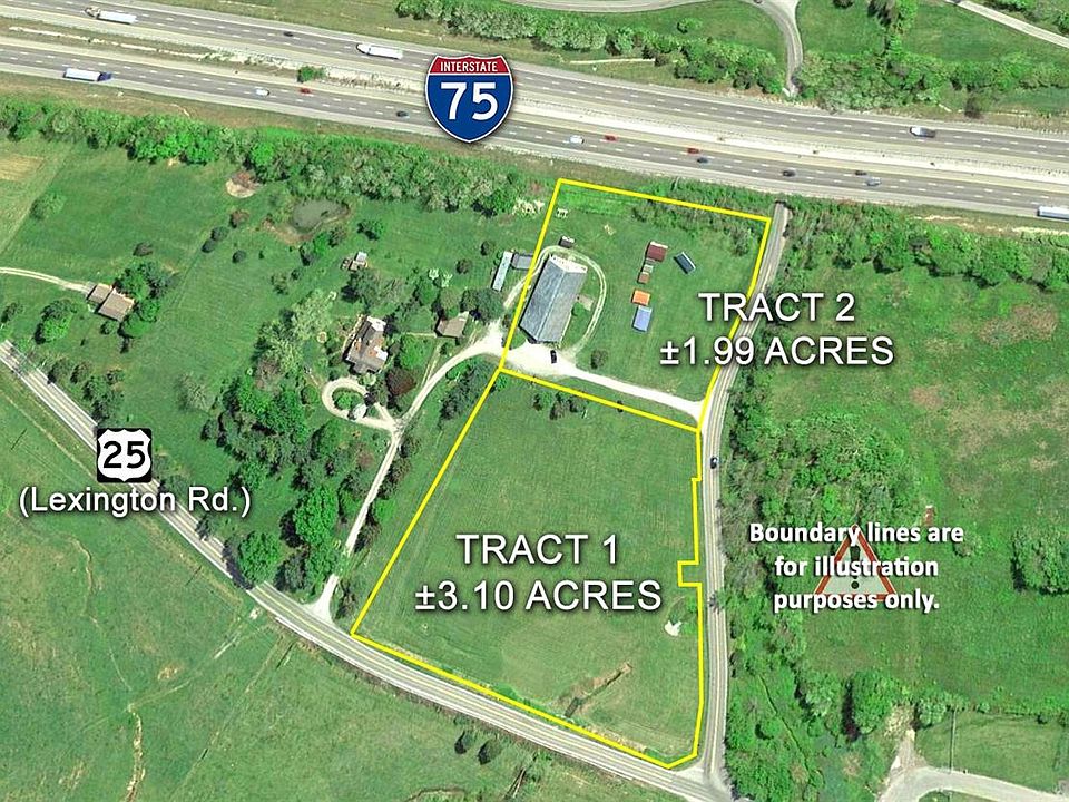 ABSOLUTE AUCTION: This property is to be sold in two tracts (multi-parcel auction style) at Absolute Auction on Saturday, May 19, 2018 at 10:00AM with no minimum bid or reserve. SALE TERMS: As Is/Non Contingent/10% earnest money deposit/60 day settlement/10% buyer's premium added to all offers and included in the total contract sales price. Pre-auction offers welcome under the same terms & conditions. 5.09 acres is two tracts. TRACT 1 is 3.10 acres unimproved with over 422 feet of frontage on Lexington Rd (US 25) and 395 feet of frontage on Colonel Rd. Zoned Agriculture but poised for commercial zoning. TRACT 2 is 2.00 acres with 7000 SF retail store with 395 feet of frontage on Colonel Rd. and 290 feet facing I-75.