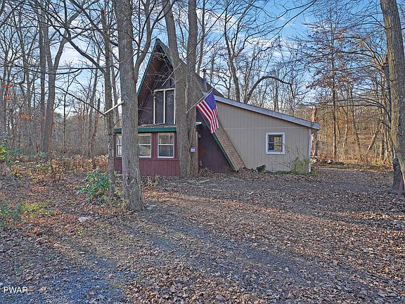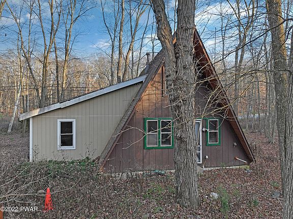 ADORABLE A-FRAME WITH ENDLESS OPPORTUNITIES! PRICED TO SELL AS IS PLUS COMES WITH A FREE 1 YEAR HOME WARRANTY! Located just minutes from the 8 glorious waterfalls that make up Bushkill Falls in the Poconos, find this 2 bedroom, 1 bath property that is a blank canvas for anyone who has been waiting for this diamond to hit the market! An open living main floor offers a foyer, 2-story great room with efficient pellet stove, 2 bedrooms, a laundry room, full bathroom, & bonus room. An upstairs loft is perfect for a family room, a home gym, or additional sleeping space for guests. STUNNING WOOD CEILINGS ALL OVER! Buyer can close it off easily if chooses too! Pool, clubhouse, gym, lake, canoes, kayaks, & beach! The website is pmle123.com, Beds Description: 2+Bed1st, Baths: 1 Bath Level 1