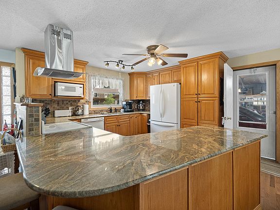 Listed by Jeremy Kahler, KWBH, 605-381-7500. Ranch style home with a finished basement on 1/4 acre lot in established west Rapid City neighborhood! *4 bedrooms, 3 bathrooms and 2,688sqft *Wood floors throughout the main living area *Large corner kitchen with granite countertops, ceiling height cabinetry, white appliances and a large island for added seating *Nearby dining area with slider door to the back yard *Primary suite in back corner of the home, with comfortable bedroom and ensuit bathroom *2 additional bedrooms, 1 full bathroom and main floor laundry closet complete this level *Basement level offers an oversized family room with a wall of built in shelving, 1 bedroom with 2 walk in closets (ntc for window size), 1 bathroom with walk in shower and a large mechanical room with storage and workshop space *Attached 2- car garage with storage shelves and a pedestrian door to the back yard *Ample off street parking with the extra wide driveway and bonus parking pad- bring your RV or boat! *A maintenance free back deck overlooks the fully fenced back yard with mature trees for shade and privacy *Enjoy the privacy of no neighbors behind with the city owned property behind *Bonus maintenance free deck out front, overlooking the neighborhood *New AC in 2022, windows updated in last 10 years and extra hardwood will stay with home.