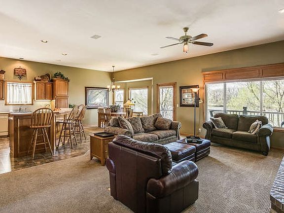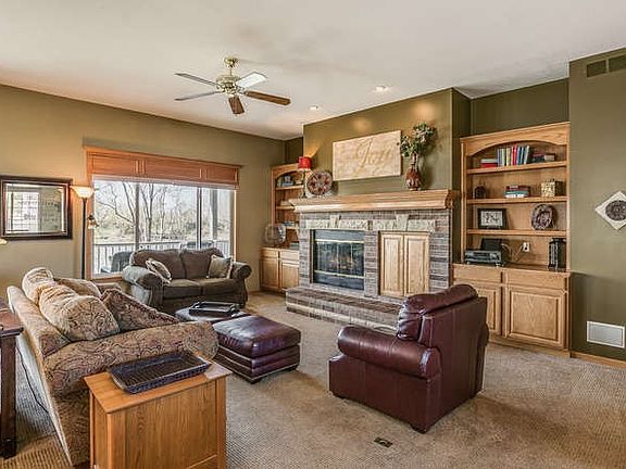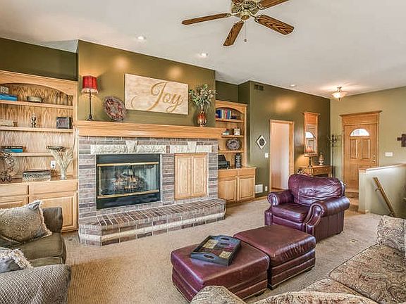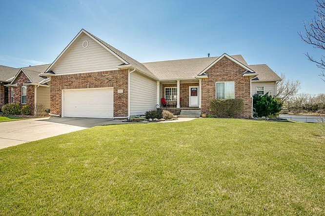 Fabulous water view listing! Main floor features over 1700 square feet with 10 foot ceilings throughout the main floor living space. Open floor plan with large kitchen and eating bar. Main floor laundry room. Large living room with wood burning fireplace and custom built in bookshelves/ cabinets. Large picture windows viewing out to a 40 acre lake. Main floor master suite with separate tub/ shower, water closet, and walk in closet. New carpet throughout main floor and fresh paint inside and out. Full finished walk out basement will make you feel like you are in a cabin in the mountains with custom log siding in the family room and 4th bedroom (currently used as an office). Family room with custom built ins and gas fireplace. Oversized wet bar with custom hickory cabinets and built in dishwasher. Finished play room under the stairs with built in light. 4th bedroom with large walk in closet. Large covered deck and walk out covered patio from the basement family room. Home is situated on a cul de sac lot with a sprinkler system and wrought iron fence. New roof, no specials, and Maize Schools! Walking distance to the Sedgwick County Park and Zoo. This home is neutral and move in ready!