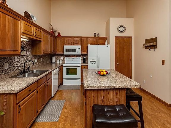 Hard to beat location! Updated 2 bedroom 2 bathroom Urbandale condo. Tiled entry with laminate wood floors throughout. Open concept kitchen with a ton of cabinet space, pantry, tiled backsplash, and island. Huge vaulted ceilings! Living room features gas fireplace and walks out to the over-sized deck that overlooks mature trees. This second floor corner unit has its own private entrance, 1 car detached garage, and 1 assigned parking spot. Conveniently located next to all possible amenities, 15 minutes from downtown Des Moines and Jordan Creek. If you have been looking for quiet, private, and low-maintenance housing - look no further! Contact today for your private showing.
