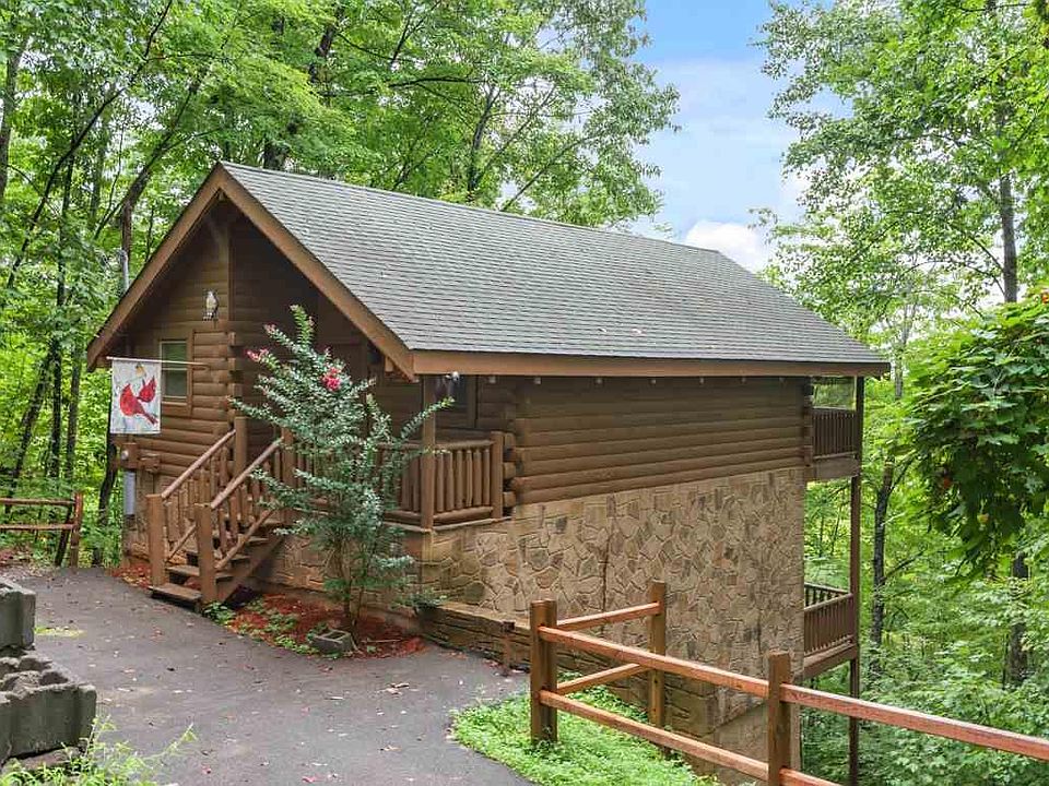 Adorable cabin with GREAT rental history of over $30K last year and on track to do better in 2018. Top level is honeymoon-type studio layout, and downstairs is being used as game room/bedroom. Bathroom on each level. This cabin has a two-bedroom septic permit. Rental company rents it as a 1-bedroom with game room and extra sleeping. The cabin is unexpectedly spacious, even has full sized laundry! Guests love this cabin, and it has built a great following.
