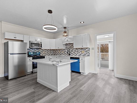 Walk through the welcoming front porch and enter the freshly painted and floored open-concept living and dining rooms. Entertain in the brand new eat-in kitchen with central island and breakfast bar, complete with granite countertops and new appliances. A renovated laundry/mud room and modern half bath complete the first floor while the large back deck and fenced-in backyard add to the outdoor entertaining and living possibilities! The second floor features three freshly carpeted and painted bedrooms with ample natural light and a contemporary brand new full bath. Retreat to the third floor where a spacious fourth bedroom with additional attic storage are found. The full basement and area above the laundry room provides even more storage space. Recent updates include brand-new kitchen and bathrooms, plus new flooring, fixtures, and fresh paint throughout!! A newly installed HVAC system ensures year-round comfort. Exterior upgrades include new porch flooring , rubber side roofs, and sidewalk. Situated in a quiet, walkable neighborhood, this home is truly TURN-KEy and ready for you!!