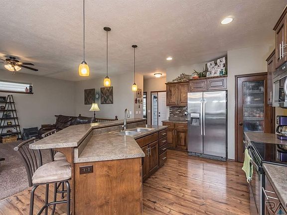 A move-in ready 4-bedroom, 3-bath home in a desirable area of southwest Sioux Falls! You will love this ranch home (built in 2013) with two bedrooms and two baths on the main level. Master bedroom has a master bath (double sinks) and a walk-in closet. Main floor has an open living room, kitchen (with pantry), and dining room with access to a covered deck. Main floor laundry. Lower level offers a large family room with a built-in bar. There are also two more bedrooms and a bathroom on this lower level. Triple-car garage. Yard with sprinklers. Great neighborhood close to schools. This home won't stay on the market long!