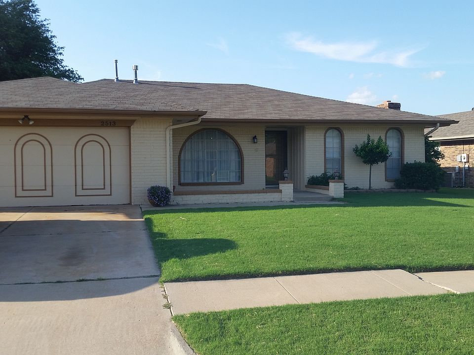 Beautiful, remodeled and well kept home in family friendly neighborhood in Moore school district!!! The kitchen has been updated with solid surface counter tops and nice back splash! The kitchen cabinets has also been re-stained. Both master bathroom and second bathroom has nice granite counter tops. The master bathroom also has a new walk-in shower. Both interior and exterior paint is newer! Good size backyard with very large covered patio and beautiful landscaping!!! Great location with walking distance to Fairview elementary school and Moore West junior high school!!! Siler Park is located in the neighborhood! The park has a large playground and a ball field! Easy access to I 240 and I 44!!! 10 - 15 minutes from Tinker air force base and down town OKC!!! Come and see before it is SOLD!!!