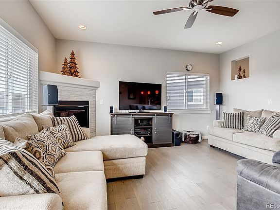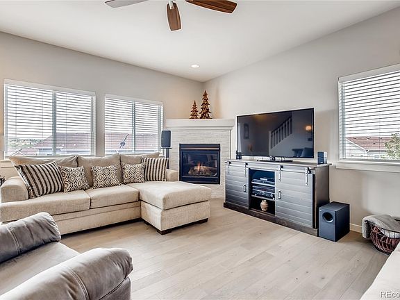 Stunning mountain and valley views galore greet you to this beautiful attached duplex home in Castle Rock's small and intimate community of The Oaks. Showcasing a professionally xeriscaped front yard and welcoming front porch, this homes inviting atmosphere is a joy to return home to again and again. Step inside to a grand open living room/dining room/kitchen layout ideal for entertaining with gorgeous laminate wood floors and an abundance of natural light streaming in from the many windows that boast those fantastic views! The living room is anchored by a cozy gas-burning fireplace that's great to curl up next to with a good book on chilly winter evenings. Expand your entertaining and living space on the 13'x13' Trex deck accessed from the dining room, and enjoy the incredible valley views that await! Sure to inspire the home chef, the gourmet kitchen features sleek quartz countertops, pretty white subway tile backsplash, a large eat-in island, stainless steel appliances with 5-burner gas range, and plenty of dark wood cabinetry for all your storage needs! Journey upstairs to find a flexible loft space with plenty of storage that makes a great home office or playroom/tv area. Three spacious bedrooms offer incredible views, comfort, and privacy, including the master retreat with lots of space, a large walk-in closet, and modern en-suite bath. An unfinished walk-out basement provides an additional 901' of space to finish off how you'd like, and a sliding door to the walk-out covered patio to enjoy the outdoors rain or shine. Discover an entertainer's paradise in the newly xeriscaped backyard complete with sprinkler system, expanded patio for large gatherings! Conveniently located in award-winning Douglas County Schools and Castle Rock's quaint downtown shops and trendy restaurants, this gorgeous home shows like a model and is ready for you to move right in and call it home!