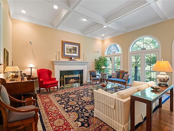 Exclusive Gated Retreat! Tucked away at the end of a quiet cul-de-sac in a private gated community consisting of just eight homes, this residence combines elegance, functionality and serenity. A dramatic two-story entry with sweeping staircase sets the stage, while tall ceilings with coffered detail and crown molding and beautiful hardwood floors throughout the main level create timeless sophistication. Designed for entertaining, this home offers a large formal dining room with bar sink and wine fridge, a spacious hearth room, and an inviting eat-in kitchen featuring double ovens, two new SS dishwashers, granite counters, large island and generous prep space. Don't miss the large composite all season screened-in porch, which makes a perfect sleeping porch and is great for hosting guests or simply relaxing as it overlooks the treed surroundings. The porch wraps around the entire back of home and leads to a second covered area with access from the primary bedroom creating the perfect retreat. The main floor features a luxurious primary suite with spa-like bath, plus a versatile office with custom built-ins. Upstairs features three large bedrooms, each with their own en-suite bath plus a magical playroom that transports you to your favorite childhood storybook. The walkout lower level expands the living space with a full second kitchen, fireplace, bedroom with its own private sitting area and a large exercise room with steam shower. The home is wired with Bose speakers and sits on a beautifully treed, private lot. Don't miss your opportunity to see this estate sized home in the highly desirable location of Chartwell West.