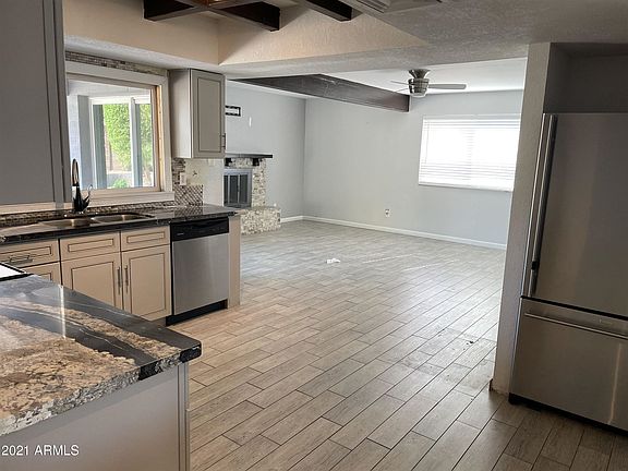 This charming 4 bedroom/two bath is loaded with style! Great layout with this super home! Wooden beam ceiling detail, wood tile flooring throughout all main rooms. Beautiful north/south lot in great Chandler neighborhood. Good size bedrooms and spacious bathrooms. Upgraded kitchen cabinetry and granite countertops. A backyard to entertain in with newly plastered and newly tiled sparkling pool, grassy area, pavers, & ramada covered sitting area with fire pit . Amazing location close to restaurants, shopping and the 101. Pool is currently being re-plastered and tiled.
